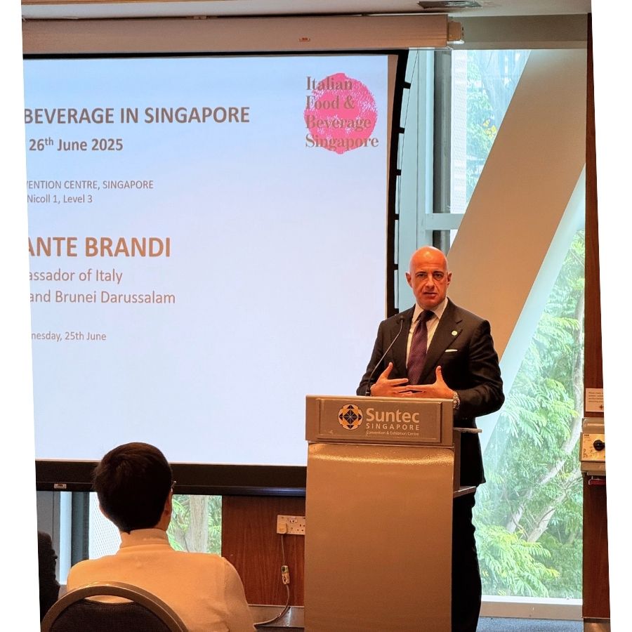The event featured the prestigious presence of H. E. Dante Brandi, Italian Ambassador to Singapore and the Sultanate of Brunei, who officially presented this significant initiative. His participation underscores the commitment of Italian institutions to promoting authentic Italian gastronomic tradition in the most strategic international markets.