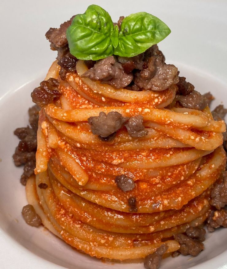 Pasta di Gragnano con Ricotta, Ragù e Basilico fresco